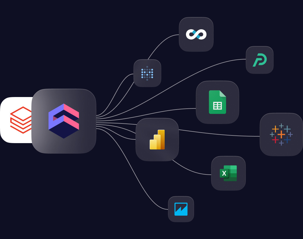 Power all your downstream data consumers with consistent Databricks data, avoiding metric sprawl. Combine Cube and Databricks to expose data via SQL for BI tools, REST and GraphQL for embedded analytics, MDX for Excel, and DAX for Power BI. This ensures that AI agents, BI dashboards, spreadsheets, and embedded analytics all access the same logic without the need for rebuilding in each tool.